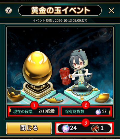 | 10/17(土) | ★3覚醒マメ 1体、ダンジョン鍵 150個 |
